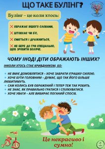 Булінг — це систематичні дії, спрямовані на приниження, залякування або завдання шкоди іншій дитині. У закладі дошкільної освіти булінг зазвичай має неусвідомлений характер, адже діти ще тільки вчаться контролювати свої емоції та поведінку.
