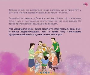 Шановні батьки, просимо Вас підтримувати вихователів, довіряти їм, бути чуйними, толерантними, виявляти взаємоповагу. Беззаперечно, що сьогодні найперше завдання це захист та збереження життя дитини. На скільки це можливо дбайте про режим дня дитини, про доступ до їжі та води. Але не забувайте про розвиток і освіту. Не відкладайте це на потім. Знаходьте час і місце розповісти/прочитати казку, історію, оповідання; вчіть вірші напам’ять; переглядайте разом мультфільми; опрацьовуйте разом матеріали різноманітних освітніх платформ (багато з них відкрили доступ до своїх матеріалів на безкоштовній основі); надавайте значення дитячим справам; розмовляйте зі своєю дитиною; розмірковуйте, припускайте, мрійте, фантазуйте про все на світі; грайте разом. Все це допомагає дитини відчувати себе у безпеці. Звертайтеся за консультацією, підказкою, порадою до вихователів вашої дитини, до методиста, психолога та всіх фахівців дитячого садка, який відвідує ваша дитина. Шукайте можливості взаємопідтримки.